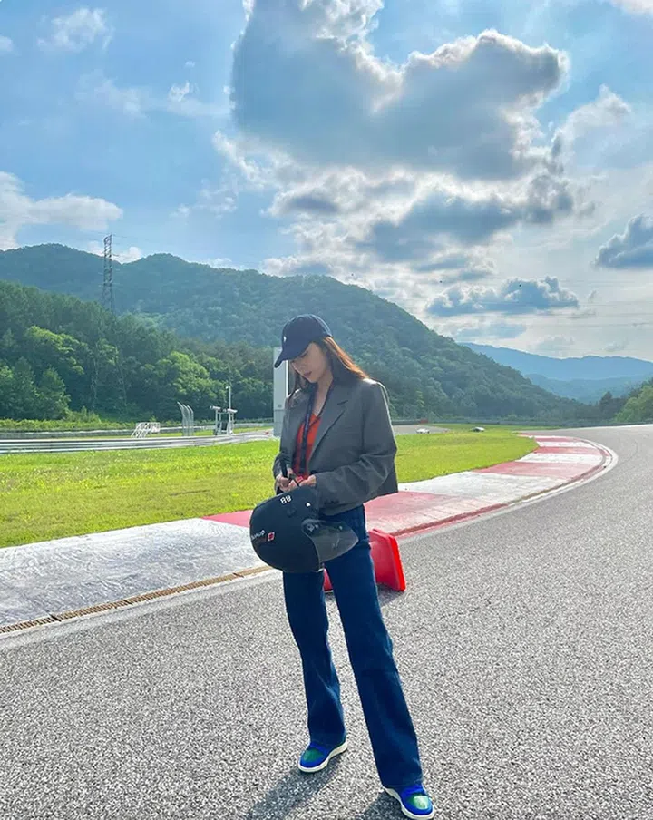 Jisoo穿Dior早秋系列西装及短裙,还骑上品牌与摩托车品牌Vespa携手打造的联名车款,造型青春又活泼。