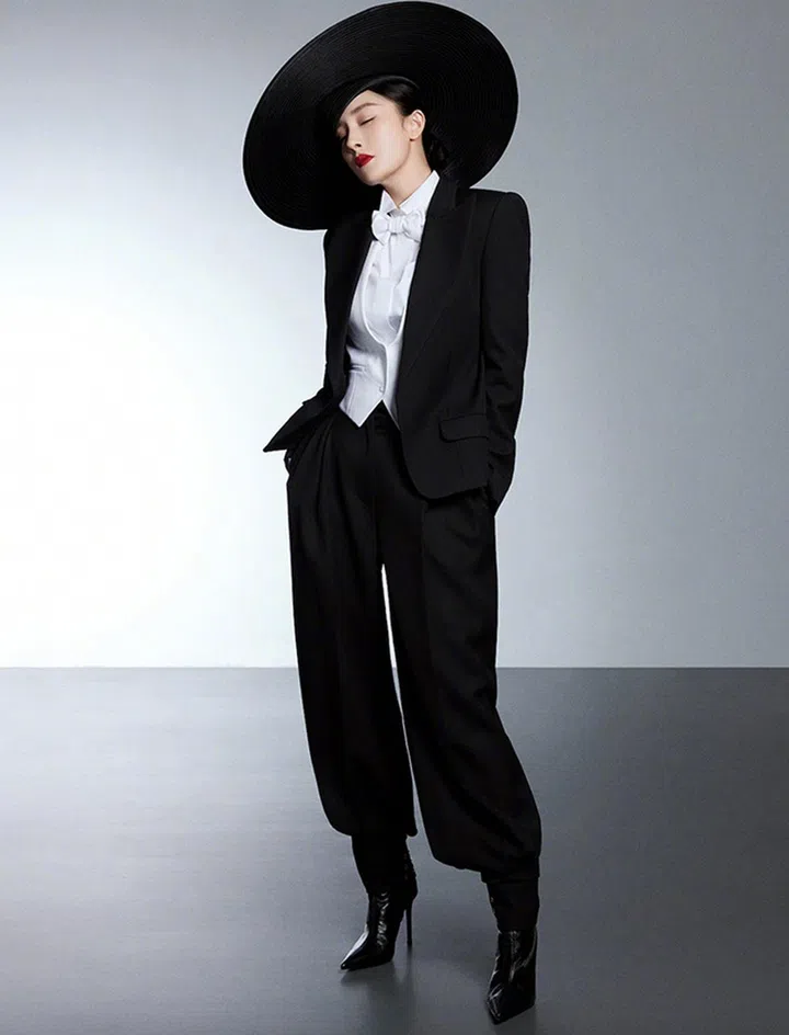 另外,早前她出席着装主题为黑白套装的“嘉人女性影响力之夜”,穿着超帅黑西装,还以半面“公主切”发型搭配复古大檐帽,优雅与潇洒并存。