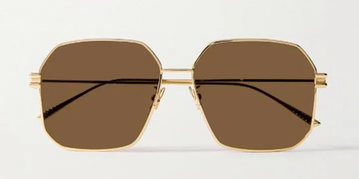 这款极简风墨镜出自BOTTEGA VENETA,选用亮泽的金色金属搭配别致的六边形镜框,凸显出棕色的防紫外线镜片,尽显利落干练的气质。