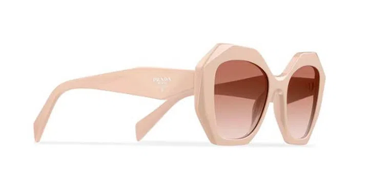 大胆前卫的PRADA Symbole 墨镜采用醋酸纤维材质演绎Oversize几何设计。粗前框廓形时尚有型,外角处呈斜角切面,定义设计风格。3D镜腿则饰以图形式的Prada三角形徽标,独具一格。