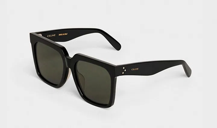 CELINE的墨镜是不少明星的街拍必备品,这款超大款板材方框太阳镜,以亮泽的黑色板材制成,超大款方框内含有偏光镜片,尤适合圆形或椭圆脸型人士佩戴,展现经典高尚的独特品味。