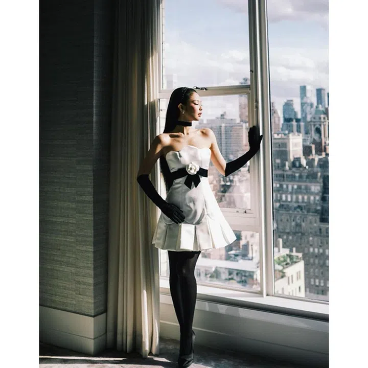 人间香奈儿之称的Jennie,以Chanel 1900 Archive山茶花造型小礼服出席Met Gala。这样的黑白风打扮,立刻让时尚人纷纷重新爱上这样的经典look。