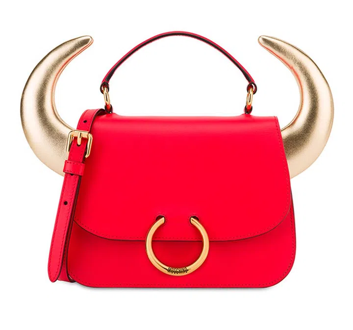 Moschino创意总监Jeremy Scott今年再为农历新年创作全新限量款式,包含成衣及配饰总共16件单品。这款手袋采用极具春节气氛的红色及金色,并从两侧弹出好运牛角,将品牌疯狂有趣的独特风格诠释得淋漓尽致。