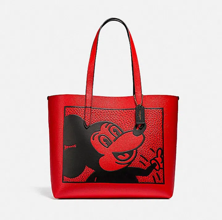 Coach+Disney+Keith Haring三方共同呈献的特别联名系列,红色的tote款式,不仅使得黑色Mickey图案更显炫酷,且容量超大(36cm x 31cm x 10.5cm),适合随身物品“包”罗万象的你。