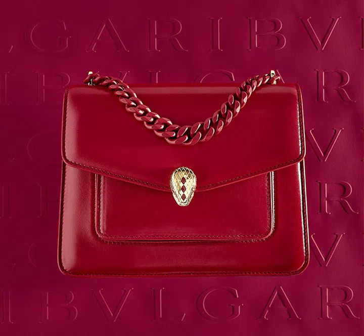 Bvlgari为新年特别呈献丰富的手袋、珠宝、腕表及配饰。其中红色款式比如Serpenti Forever链袋、迷你袋、链式钱包及卡包,此外还有红色的多圈皮革手镯供你搭配,喜庆又奢华。