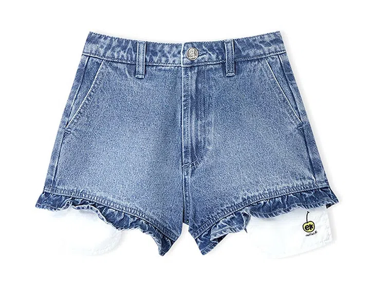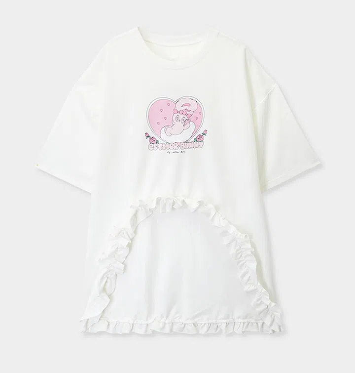 前后不一的荷叶边不对称T恤,既有oversize的廓形,又适合不喜欢造型太过“松垮”而总要把前襟收进裤腰的你。这下前短后长的造型,是不是感觉更加方便?