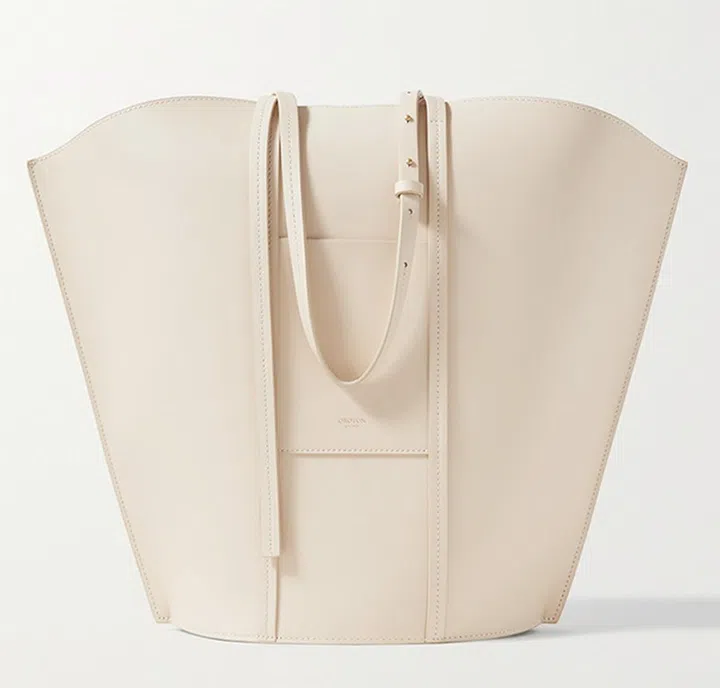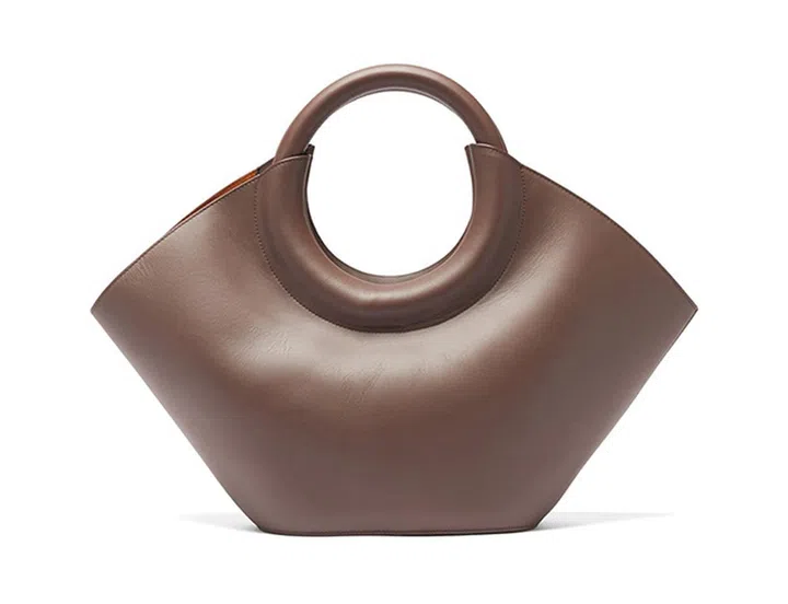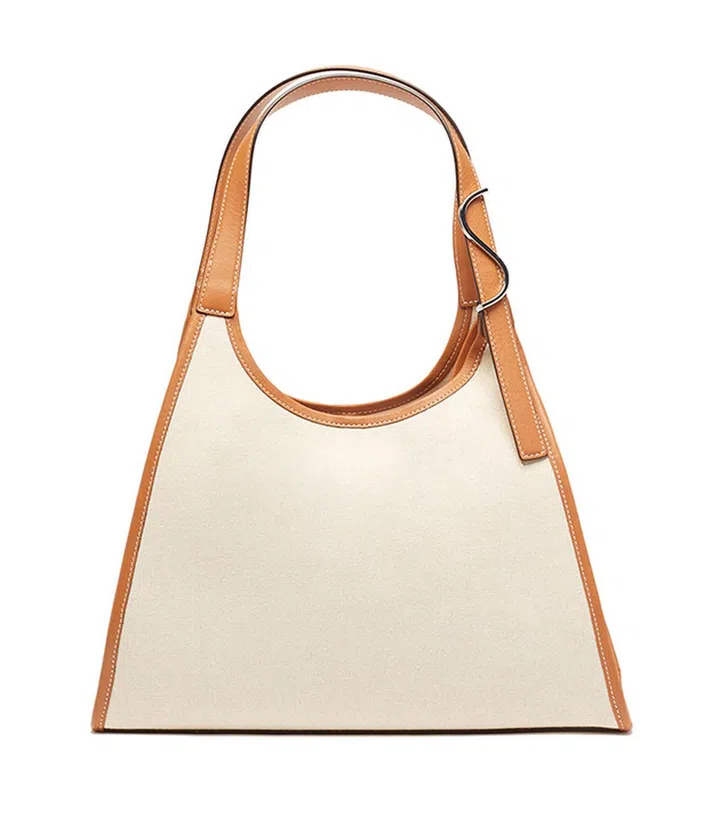 Staud的手袋设计也是具有醒目的结构,同时也拥有休闲随性的风格。这款梯形手袋容量超大,手拎或肩背都很方便。