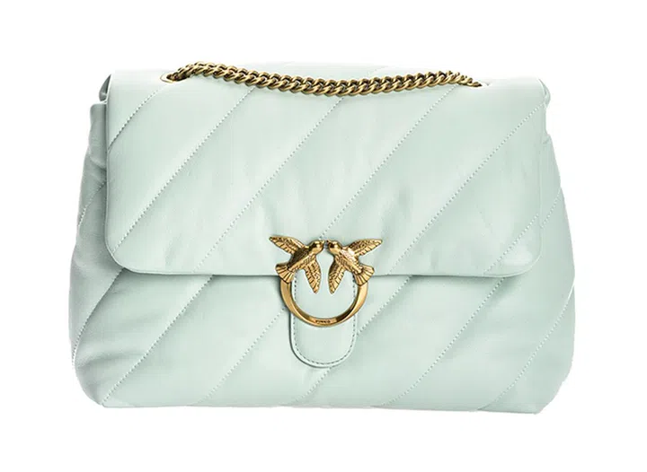 Pinko的经典“燕子包”,也有造型蓬松柔软,如同枕头的放大版本。装饰简约绗缝元素,并选用淡雅纯色,适合炎热气候下搭配清凉裙装。