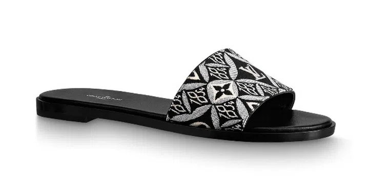 热气Monogram设计元素的女孩看过来!Louis Vuitton重新演绎复古的Since 1854提花纺织,令这款平底拖洋溢着优雅时尚的气息。