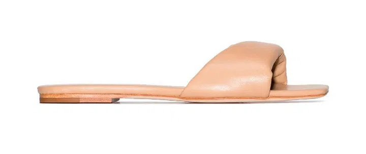 裸色高跟鞋能拉长我们的腿部线条,打造大长腿的效果。这款裸色皮革平底凉鞋,也有着类似的修饰腿型效果哦!采用柔软舒适的小牛皮制作,简约利落的方头设计,加上百搭的裸色,与任何造型配搭都能秒速提升质感。