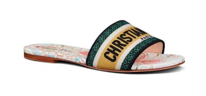来自Dior的Dway拖鞋,风格经典隽永,鞋面饰有Christian Dior绣花标志,繁复的印花图案灵感来自意大利南部的灯光节。整体线条简约,也非常方便套穿,配搭日常造型,轻松打造不经意的精致感。