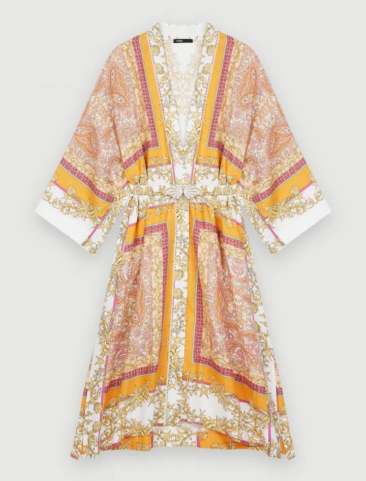 另外,品牌也全新推出限量Summer Paradise系列,包含各种适合夏日沙滩度假的成衣及时尚配饰。配色阳光,并结合海星、贝壳等海洋元素印花,设计超应景。其中各种造型灵活的款式,也方便你在旅行时在不同场合搭配服装。比如这款可开可合的kimono外衫,可以当连衣裙,也可以穿在比基尼外当作cover-up。