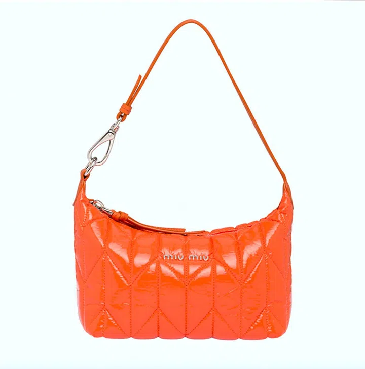 Miu Miu全新“Maritime”航海系列代人来到法国圣马洛 Plage de Bon-Secours 海滨浴场。系列中呈现的Spirit月牙包共有蓝白条纹、橘色、黑色和白色等色彩选择, 其中橘色的手袋换上漆面皮革,瞬间点亮整体装束,特别前卫。