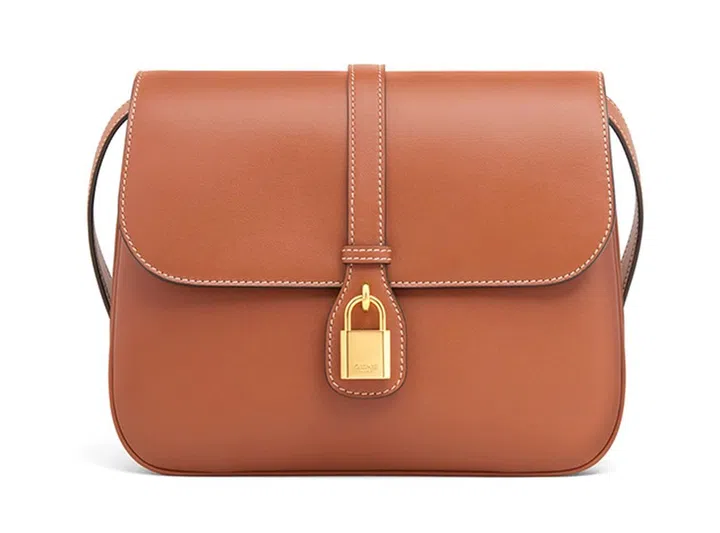 Celine的2021秋季系列以“经典法式衣橱”为主题,回归优雅复古的学院风。本季新亮相的是Tabou肩背包,采用光泽小牛皮制成复古翻盖包型,包上点缀一枚金属挂锁,成为手袋最抢眼的装饰。