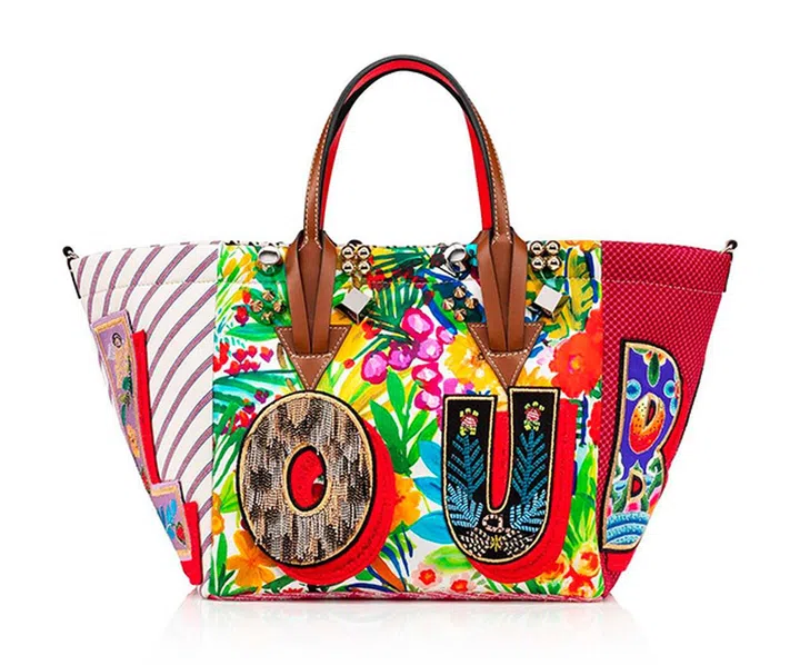 来自Christian Louboutin 2021秋冬系列的Caracaba手提包,采用花纹各异的帆布拼缝而成。有趣别致的图案及彩色印花取材自塔罗牌,绚丽多彩。手袋还附有长肩带,方便携带。