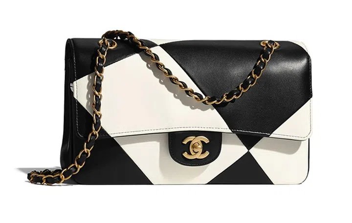 Chanel 2021早秋高级手工坊系列,灵感取自法国舍农索城堡的景观以及曾经居住在此的女性。系列中的黑白菱格纹手袋就是以城堡长廊的棋盘格地面为灵感,共有羊毛小羊皮、光滑小羊皮、斜纹软呢拼接丝绒等材质的选择,为手袋增添华丽和态度。