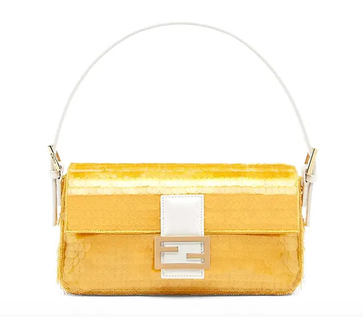 Fendi 新款Fendi Baguette 1997包款以手袋的创作及上市年份为名,并换上抢眼的复古风格,注入亮片、花朵刺绣及粉色蜥蜴皮革,更结合了夏季限定版FF Vertigo图案,尽显品牌春夏系列的迷幻光彩。