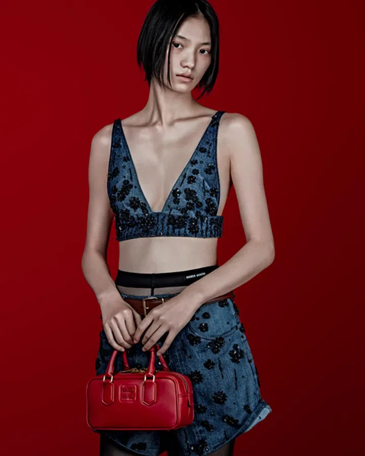 Miu样新年,品牌推出全新Upcycled系列并发布广告大片,呈现Polo衫、开衫、羊绒拖鞋、标志性的Wander手袋和Arcadie手袋,以及饰有云朵刺绣的卫衣和T恤。Miu Miu的Upcycled系列最早诞生于2020年,意在延续珍贵古董服装,倡导循环设计。这次,品牌将目光投向循环再生牛仔装,甄选千禧年前的特别款式,在保留原有外侧接缝的基础上,进行解构与改制。同时,品牌也首次将手袋纳入Upcycled项目,带来以Miu Miu 产品皮革余料制成的Patch手袋。