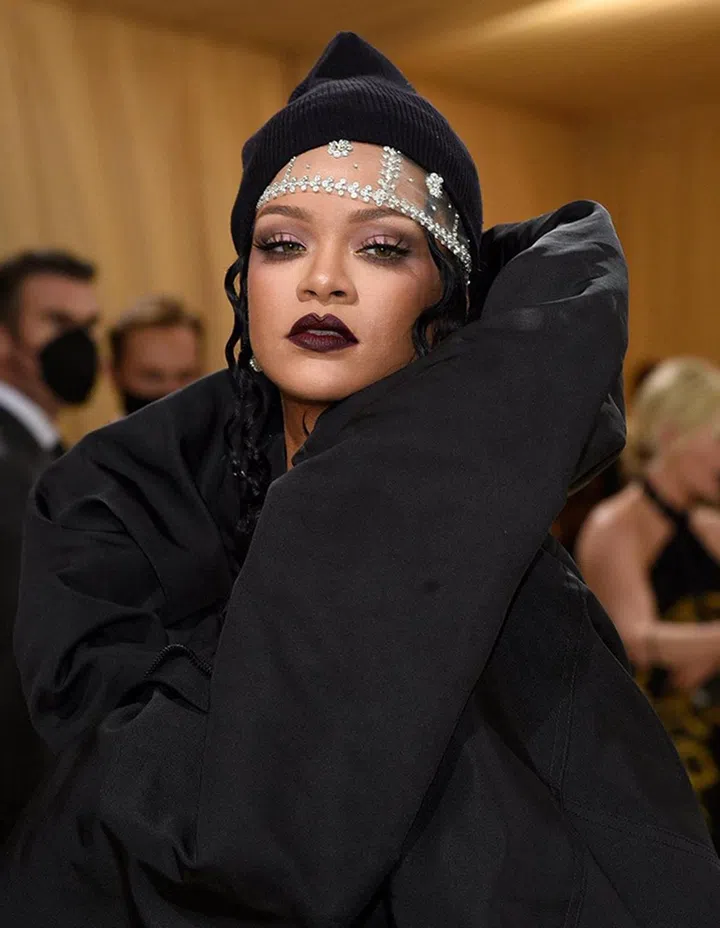 时尚女王Rihanna也穿着Balenciaga的黑色造型出席Met Gala,并与男友A$AP Rocky一起亮相。虽然是全黑造型,可头上的黑色帽子却带有璀璨元素做装饰,让人眼前一亮。顺带一提,你可还记得Rihanna以前穿着由郭培设计的25公斤“煎蛋”黄袍出尽风头?她的造型从来不叫人失望。
