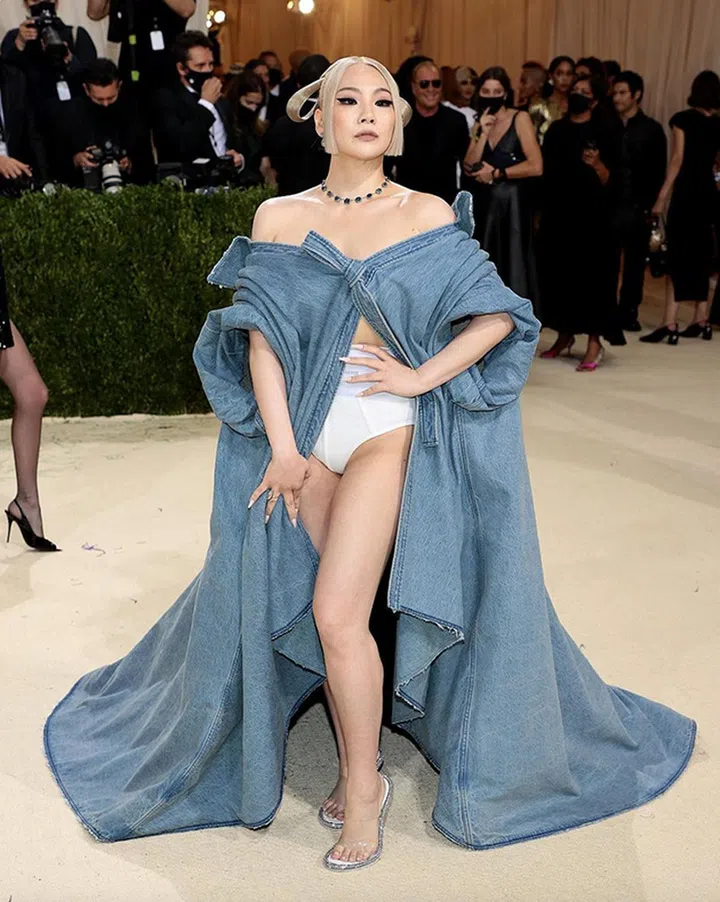 不过除了Rosé之外,今年登场Met Gala的还有韩国偶像CL。她与众不同地穿上Alexander Wang定制牛仔礼服,休闲又华丽。而且,还出其不意地露出品牌的时尚高腰底裤,让内衣也变成“晚礼服”的一部分,大胆又个性。
