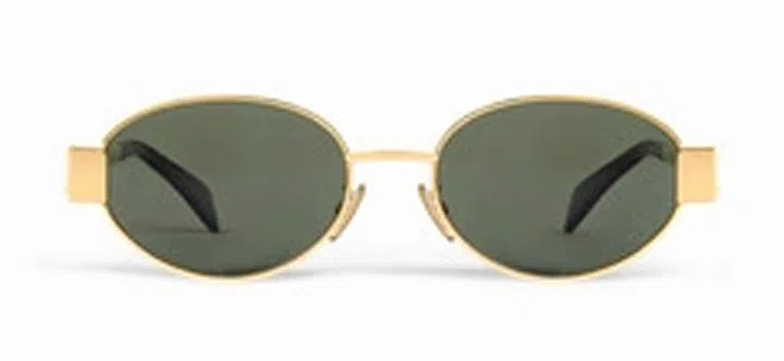 Celine推出的Triomphe墨镜,以清新的绿色镜片对比着耀眼的黄金色镜框。品牌标志性的Triomphe logo浮现在镜框两侧,低调又有质感,绝对是经典收藏版。