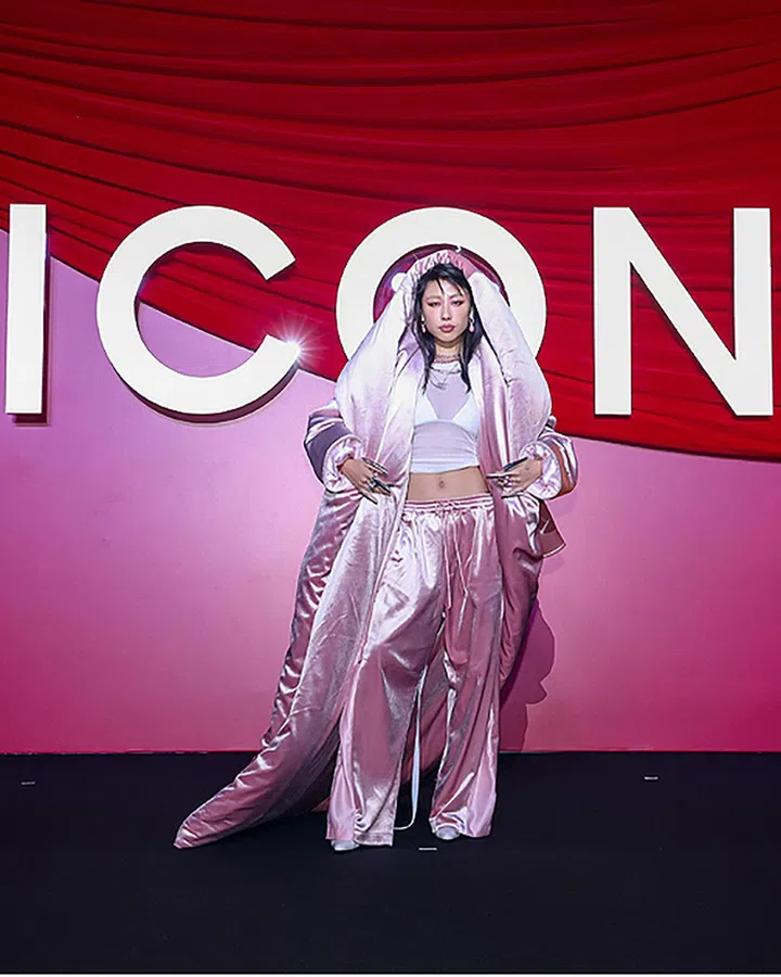 一出场即焦点所在。时尚达人陈慧选择了House of Harry Halim设计独特的泡泡厚实大衣,搭配简约的白色长袖和运动裤,这种看似随性却又极具策略性的混搭,不仅展现了她的个性,也很好地诠释了时尚与舒适的结合。她的这种“睡衣”风格的选择,显然是对晚宴主题的一种机智回应,将休闲与正式场合的界限模糊化,创造出一种全新的时尚表达方式。这样的装扮不仅令人眼前一亮,也让人印象深刻。