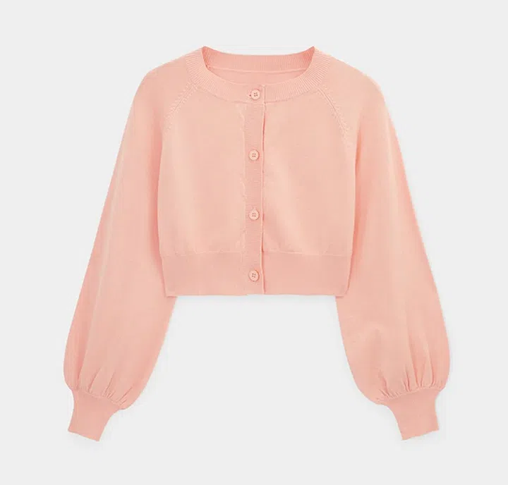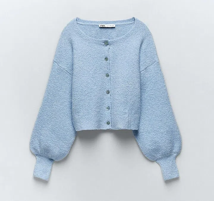 浅蓝色cardigan,可与短版针织上装一起购买,下身还可穿着白色A字裙或牛仔铅笔裙,展现你的知性女人味。