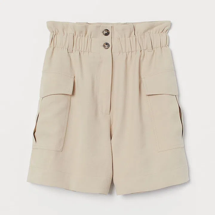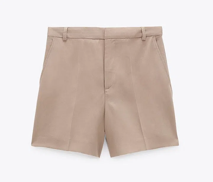 高腰百慕大短裤,搭配同款短袖上装成套穿着,或者单穿搭配浅色系或中性色上衣。如果觉得纯色blouse太过单调,你也可以用薄纱元素或蕾丝、荷叶边点缀的设计增添女性美。