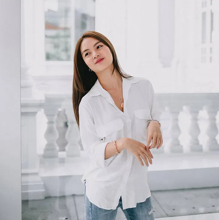 简单、干净的白色衬衣+牛仔裤,不妨再学Chantalle搭配现代优雅的时尚首饰,在细节上展现精致美。