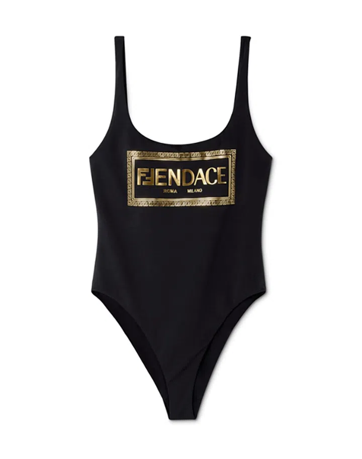 来自今季Versace和Fendi的“角色互换”设计系列,这款泳衣上的图案将Fendi的经典“FF” Monogram与Versace的希腊回纹(Greek key)结合起来,服装看似Fendi又似Versace——两个品牌索性将其合体称为“Fendace系列”。