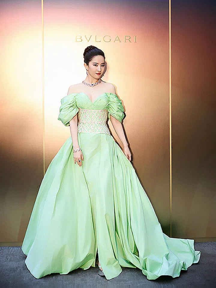 “神仙姐姐”刘亦菲也作为Bulgari全球品牌代言人亮相在罗马举办的140 周年活动,以一袭带金色闪耀腰封的淡绿色Tamara Ralph 2024春夏高定礼服出席,并搭配了全套Aeterna高级珠宝项链、手镯、耳坠及戒指。