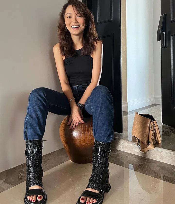 白薇秀近期爱上LV“半靴”凉鞋Moonlight half boot,既能打造酷酷的风格,又适合在炎热的本地穿着。此外,白薇秀爱穿修身上衣展现身材,其中超适合打造休闲街头风造型的单品,不妨选择剪裁可以凸显漂亮直角肩的简约背心。