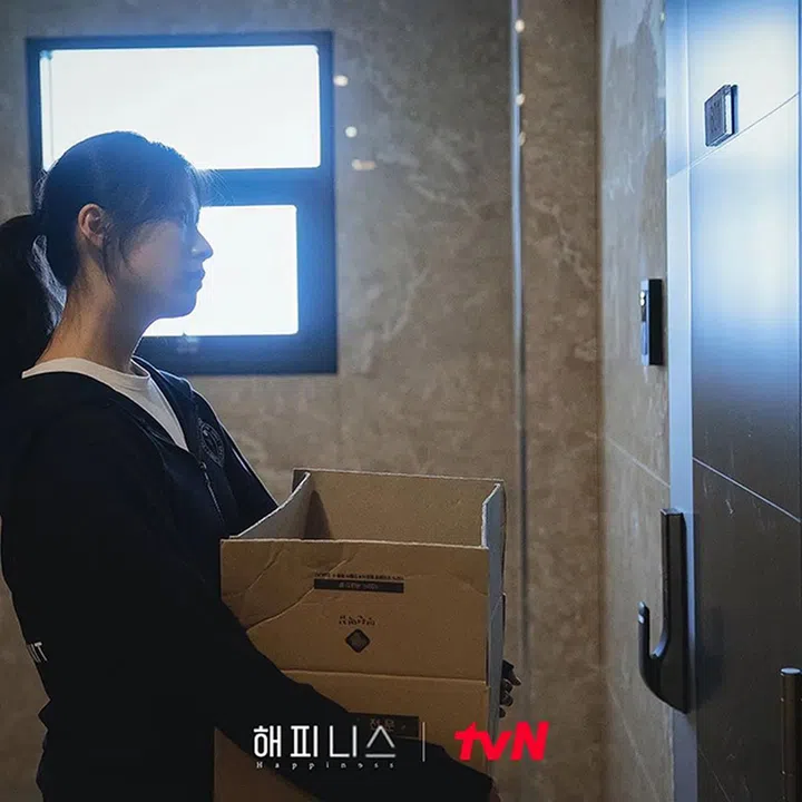 韩孝周今年以新剧《Happiness》回归(距离上部电视剧作品《W-两个世界》相隔将近5年),并在剧中饰演警察特工队战术要员。她在剧中的打扮放松自然,大多以套衫、连帽衫、T恤、针织背心等亮相。
