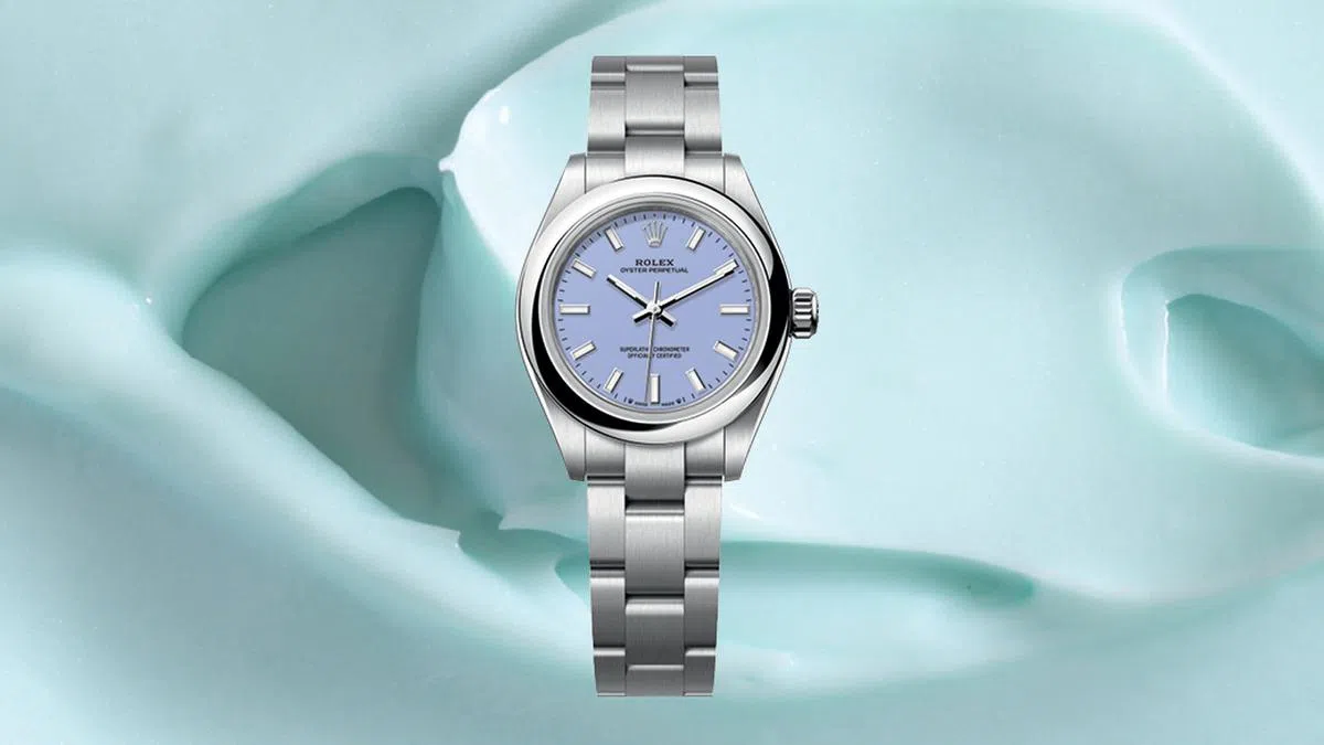 淡雅的薰衣草紫表盘,温暖的沙米色与清新的开心果绿……Rolex Oyster Perpetual系列推出多款全新缤纷表盘,秒针追逐粉彩色调,折射出阳光般的活力与精致感。这款Oyster Perpetual 28所搭配的是柔和紫薰衣草色表盘,精钢表壳与表带勾勒出简约纯粹的轮廓,为日常佩戴注入新鲜气息与时尚格调。