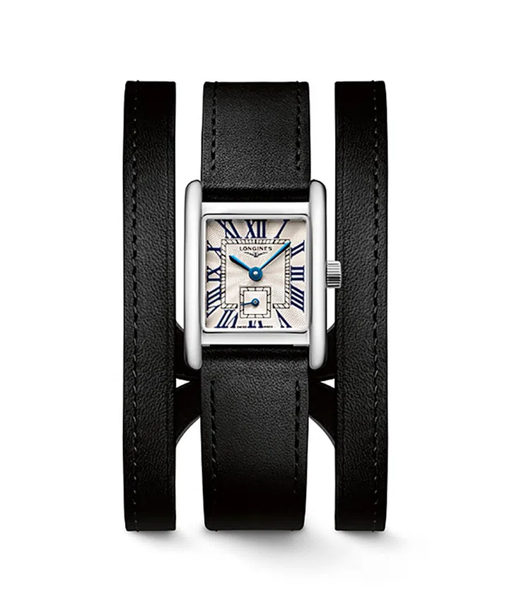 今年Longines为Mini DolceVita新添专属设计皮革表带,以多重尺寸和配色装饰手腕,不仅抢眼,佩戴起来也柔软舒适。表带上的孔洞采用烫印技术,并从1到6编号,巧妙呼应品牌所珍视的马术传统。除上图所示的黑色款外,系列也推出米棕、玫粉、红色、橙色、绿色小牛皮表带共六种款式,搭配镶钻或无钻表壳,各具特色,时尚优雅。