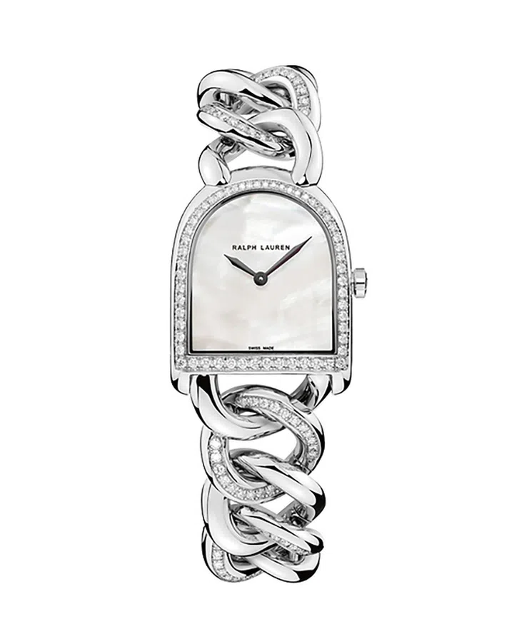 Ralph Lauren极具马术精神的Stirrup系列最早于2009年推出。该拥有马镫形表壳及罗马数字时标的腕表历年来已经历无数变革,一直保持着经典优雅的隽永气质。系列诞生15周年之际,品牌全新推出两款新设计——Stirrup Rose Gold Full Set Diamonds全钻表盘款及Stirrup Petite Link Mother of Pearl珍珠贝母表盘款。其中上图的珍珠贝母表盘款,带有镶钻表圈及镶钻表链,风格现代精致,散发温柔华贵的女性魅力。