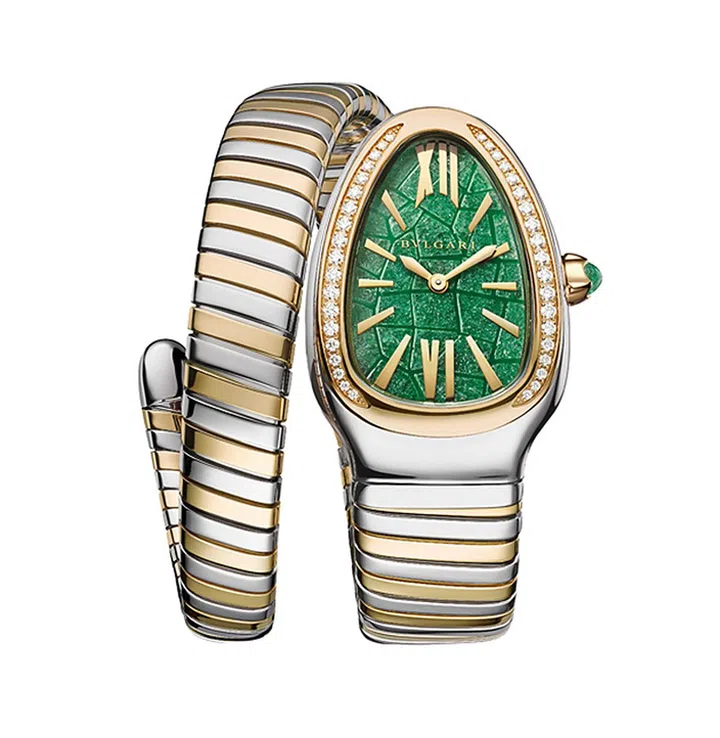 Bulgari今年再度携手日本建筑大师Tadao Ando(安藤忠雄),从四季景致撷取灵感带来Serpenti Tubogas系列的首次跨界艺术合作,推出春夏秋冬四款特别腕表——Tadao Ando表示,因他追求巧妙运用自然元素,实现建筑与自然环境之间的和谐统一。其中,春季主题腕表(Haru),以粉色珍珠贝母表盘展现樱花盛开的美景;夏季主题腕表(Natsu),以绿色砂金石表盘捕捉繁茂森林的活力;秋季主题腕表(Aki),以虎眼石表盘映射温暖的金色光辉;冬季主题腕表(Fuyu),则用白色珍珠贝母描绘出银装素裹的冰雪天地。每一枚特别款腕表皆搭配饰有Tadao Ando签名的专属礼盒,并将发售20套包含全部四款腕表的珍藏套装。