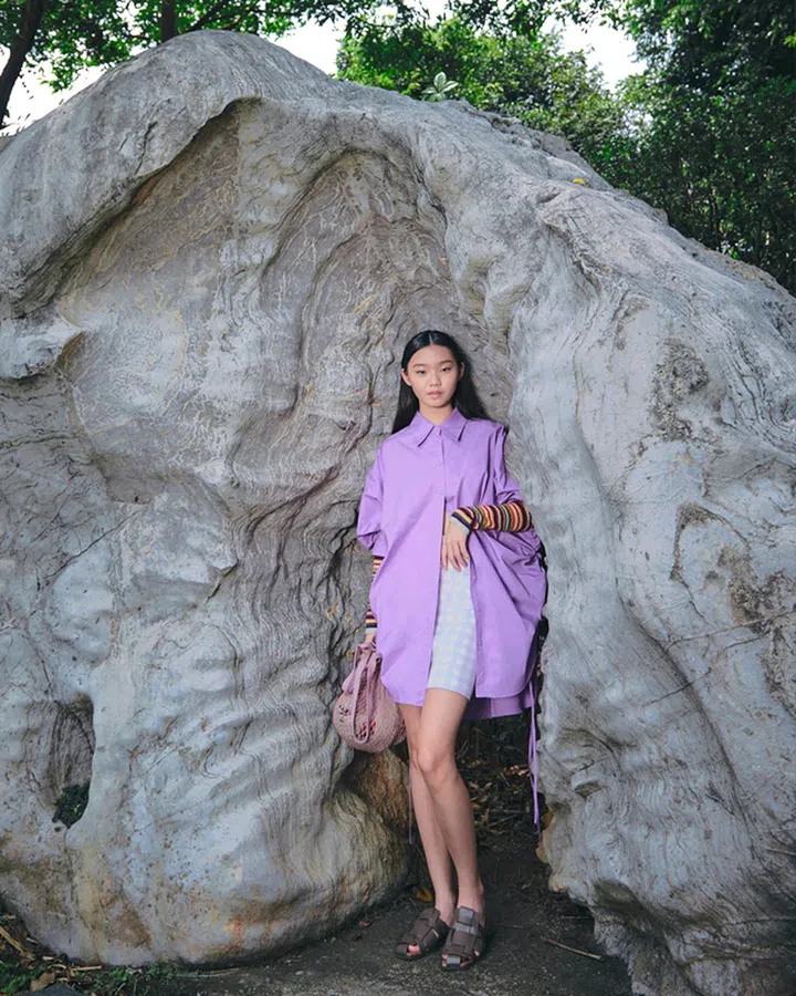 既暂时无法出国穿大衣,何不将宽大衬衫当适合热气候的“大衣”穿?在同一色针织上衣及流行单车短裤外罩衬衫,运动风造型也能有型有款。