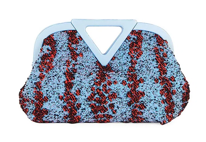 品牌也曾为Point手袋推出过针织、圈绒等不同材质的独特款式,配色新颖有趣(还包含蜜桃粉、柠檬黄等抢眼亮色)。这款色彩对比鲜明的蓝/红袋款,纹理独特,尤其具有收藏价值。