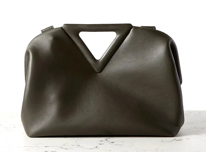 去年春夏主打的Point手袋,最大特色是柔软袋身上的倒三角形磁性V形封口提手。独特的几何感设计打破常规,前卫感十足又不失实用性。
