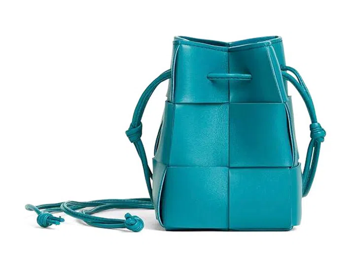 这款迷你水桶袋采用50%的羊皮和50%的小牛皮材质打造,袋身小巧,与宽大的编织皮革元素形成“反差萌”。另外其独特的Blaster色调,有如绿松石般优雅,也很受都市女性喜爱。