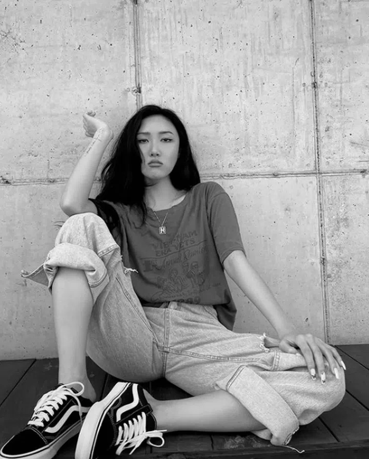 球鞋界中的经典款Air Jordan 1,多年来男女通杀,也深获许多明星潮人的喜爱。鞋款设计多样化,除了有高帮和低帮款,还有不同的颜色组合。惠利穿的是Air Jordan 1的全新配色Spruce Aura,浅灰绿色调和白色组合,视觉清新干净,营造轻松休闲的感觉。