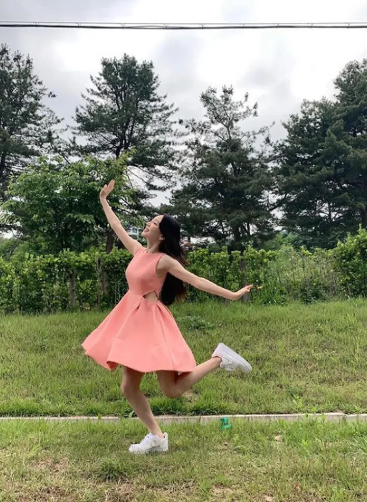 运动风的球鞋和夏日仙女裙也可以是绝配,看泰妍完美示范!粉红蓬蓬连身短裙俏丽迷人,配搭经典的Nike Air Force 1 Pixel球鞋,轻松打造甜酷女孩风。