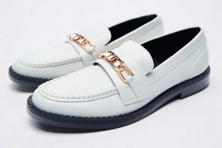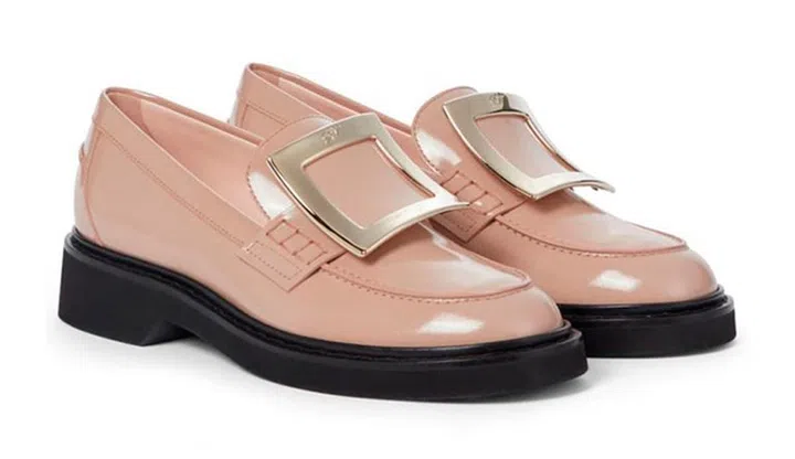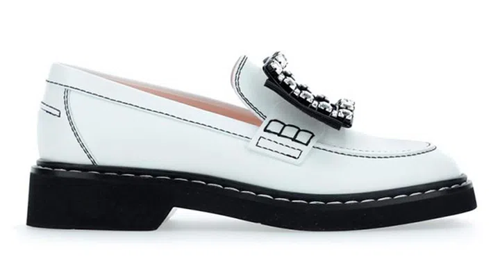 谁说乐福鞋一定要一板一眼?Roger Vivier这款皮革乐福鞋,大玩水晶扣缀饰和对比缝线,为穿搭增添层次个性。