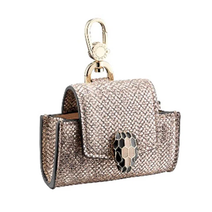想寻找一款华丽丽的耳机盒?Bvlgari这款Serpenti Forever系列的耳机盒让人眼前一亮。采用乳蛋白色的水蛇皮材质制作,搭配淡金色黄铜的Serpenti蛇首搭扣,饰以黑色和闪亮的白石色珐琅,蛇眼则以黑色珐琅制作,为穿搭注入高贵优雅气息。