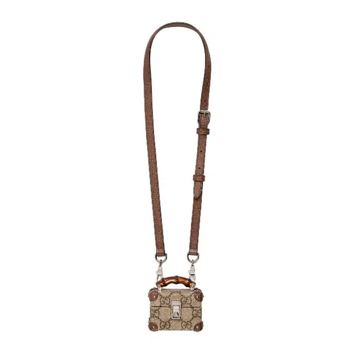 想不到吧?从经典的Jackie手袋、GG Marmont手袋到Dionysus酒神包,Gucci招牌的竹节包手柄元素还可以运用在耳机保护套上。以品牌标识性的Monogram印花为底,整体设计细节讲究,完全宛如一个缩小版精品美包,精致度满分。