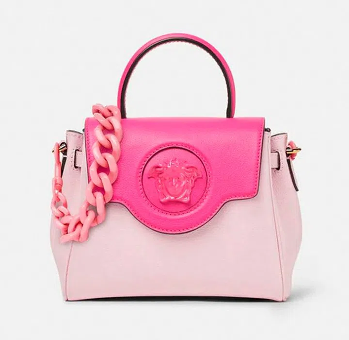 没错,你的包包收藏里应该要有一款亮色系的!虽然黑色或中性色调的包包较好搭配,但鲜亮的包款能够瞬间提升整体造型,达到点睛之笔的功效。Versace的La Medusa手袋系列共推出粉色、紫色鲜红色等8种不同颜色,配上同样抢眼的设计感链带,让你靓丽出位。