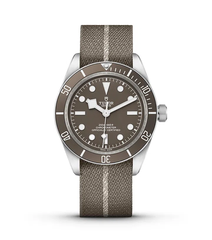 Tudor今年推出1958型Black Bay Fifty-Eight新作,首度采用925银质打造潜水腕表,并且搭配光泽闪耀的透明表壳底盖,彰显品牌高超制表技艺及独特风格。值得一提的是,这款39mm表径的腕表采用极具时尚感的taupe(灰褐/暖灰)色调,并提供装饰银色条纹的提花织纹表带或棕色粒面皮革表带选择,非常适合女性佩戴。不过,如果你想要透过透明表壳底盖欣赏内里获得天文台认证的品牌自制MT5400机芯的美妙运作,小编则建议你选择皮革表带款式(织纹表带会覆盖表背)。