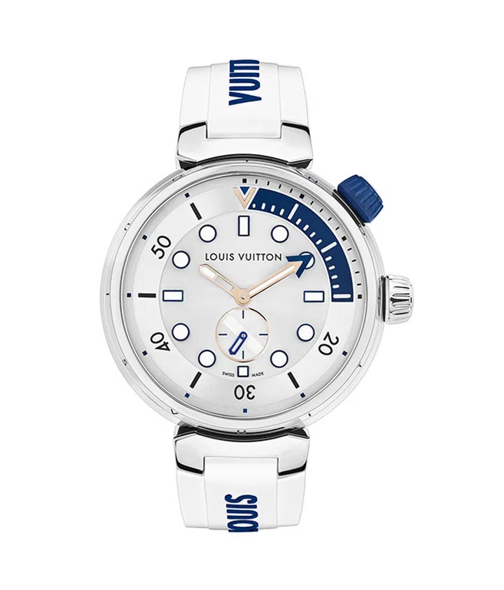 品牌为经典Tambour腕表全新推出Street Diver系列,包括三款44mm表径自动腕表及一款39.5mm表径的石英表款,目前已在官网正式开售。从外观看,鼓型Tambour腕表由一整块金属制成,表耳将表壳及表带无缝衔接,品牌的12个字母“L-O-U-I-S-V-U-I-T-T-O-N”被镌刻于表环四周,与表盘上的时标一一呼应。而新款Tambour Street Diver腕表系列,结合大胆前卫的设计和醒目色调,造型运动感十足,拥有鲜明现代都市风格。此外,腕表采用有趣的“V”对齐设计,即潜水计时指示盘上的字母V可旋转,与分针尖端的同色V对齐,二者形成一个X,标志着一场全新潜水冒险的开始。随后内部表圈将显示潜水时长,前15分钟将用鲜艳色块突显。从休闲到正式、从运动到时尚的各类场合,都适合佩戴。