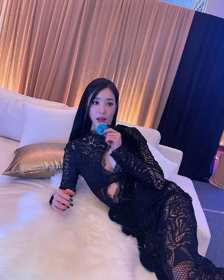 曾是韩国最火女团少女时代(Girl's Generation)的成员之一,Tiffany的单飞后依然表现突出。早前出席韩国最大盛事MAMA颁奖典礼(Mnet Asian Music Award),T她身穿一袭来自Tom Ford的黑色蕾丝透视连身裙,搭配Giuseppe Zanotti Sphera水晶高跟鞋。胸前划过一刀的“破洞”细节,以及蕾丝透视的设计若隐若现,让人有许多遐想的空间。当然“破洞”处更展现了Tiffany傲人的“胸”器,当晚回头率百分百!